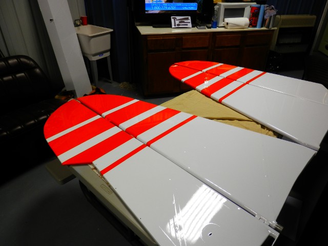 Wings have first coat of orange. This will be color sanded, and then thr final coat. |